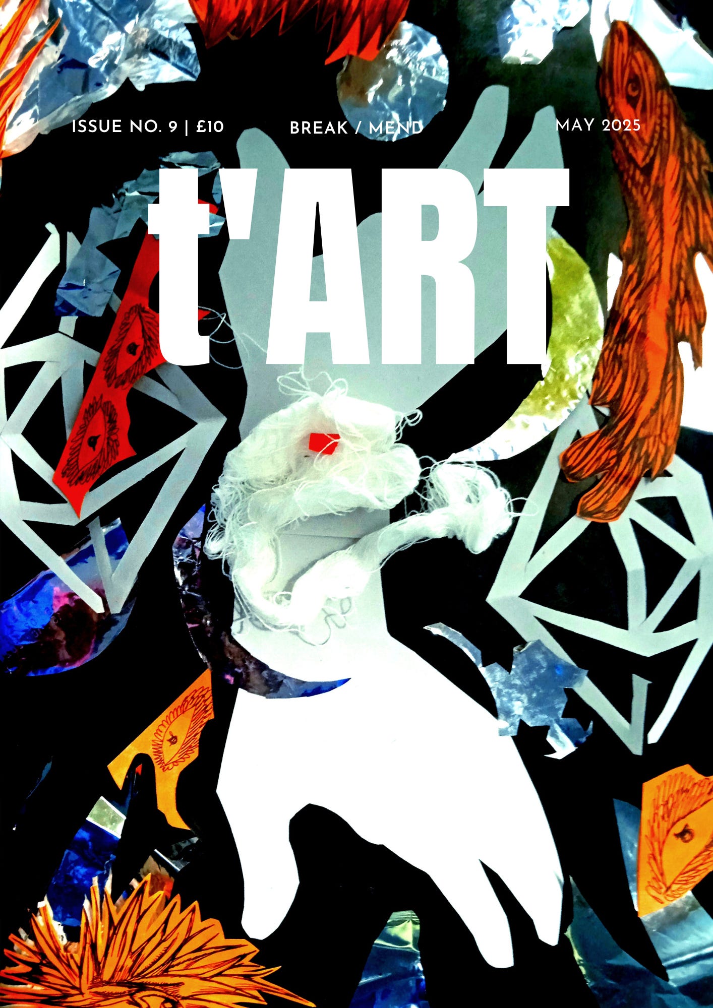 For our ninth printed edition of t’ART Magazine we asked our contributors to tell us stories of breaking, of mending. They let us into narratives that sit across fault lines, characters who fragment, endings that mend. They sent us art in shards, art that has changed direction, reshaped itself after trauma, sewn itself new. They sent us poetry and prose that fractures on the line, pulls itself to pieces, pauses in expected places. We hope you enjoy the work you find between these pages.